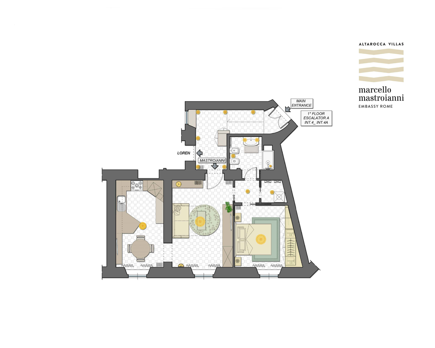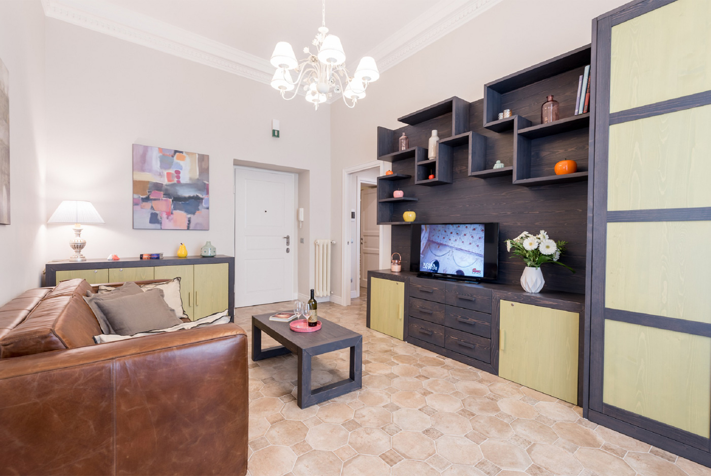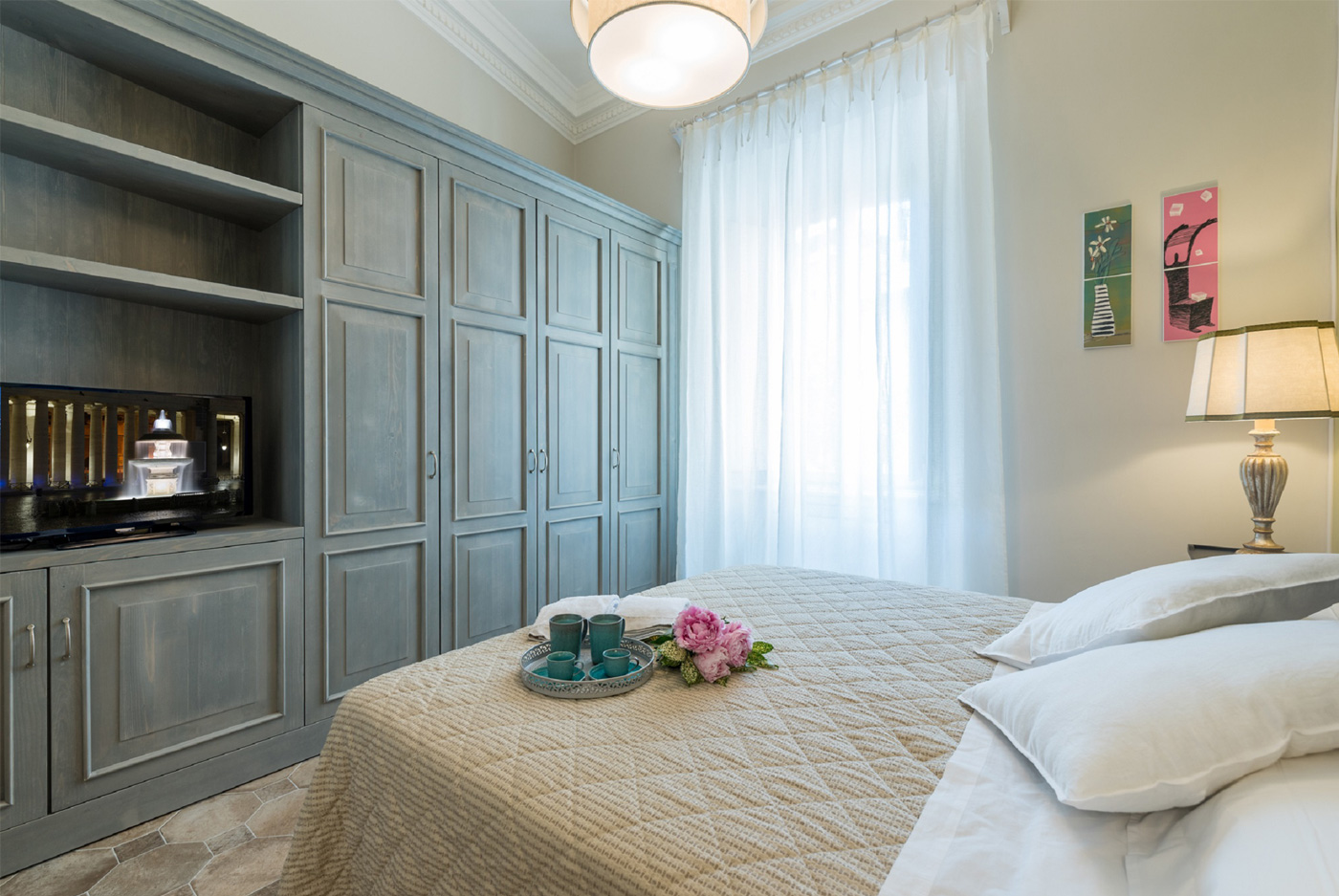 Luminoso Salone con divano letto matrimoniale, camera matrimoniale con letto “king size”, bagno caratterizzato da una grande doccia con soffione a soffitto dal getto intenso, ampia cucina con tavolo da pranzo completamente attrezzata anche di lavastoviglie, vano tecnico con lavasciuga.
